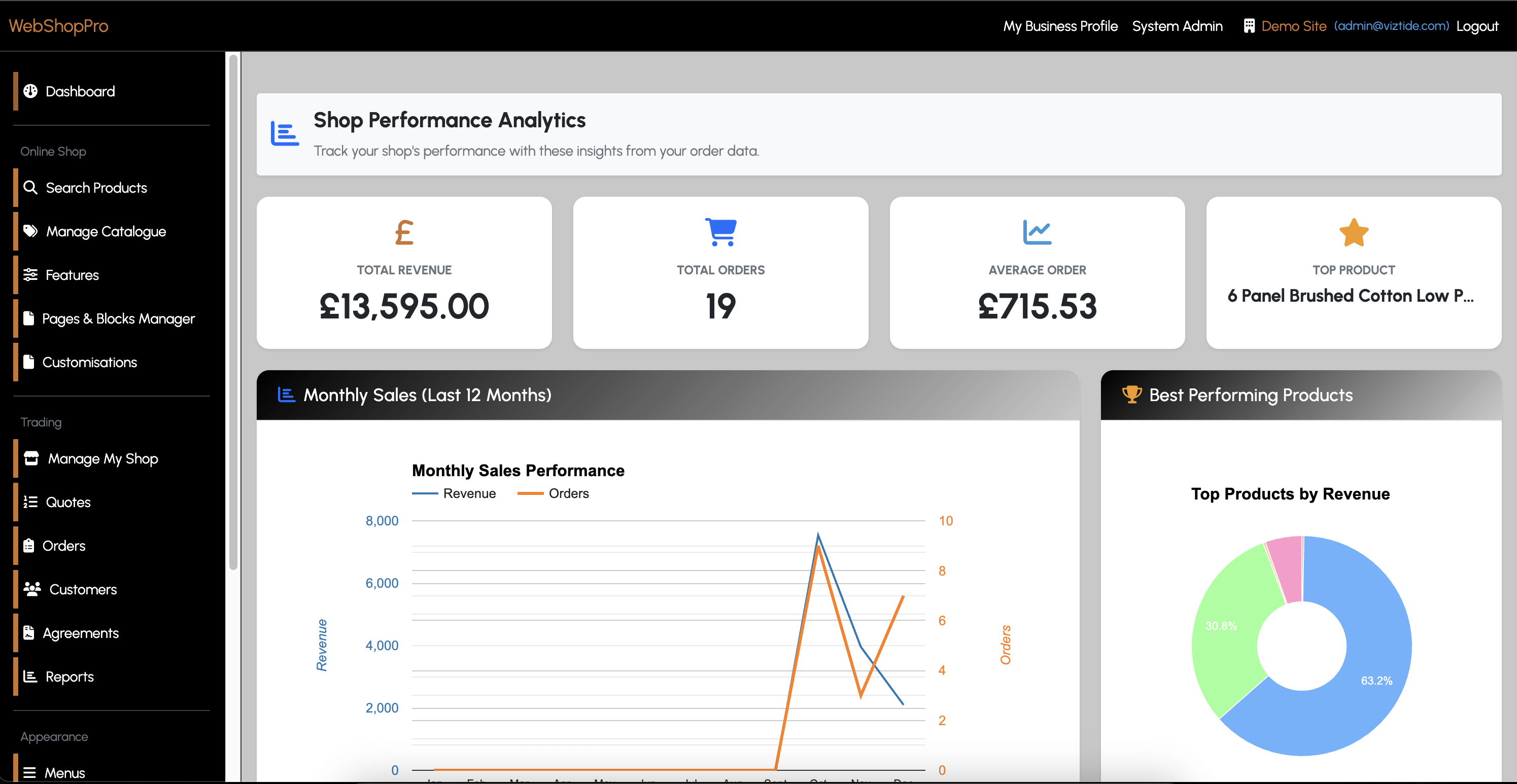 WebShopPro has a powerful performance dashboard ready to show you what you need.